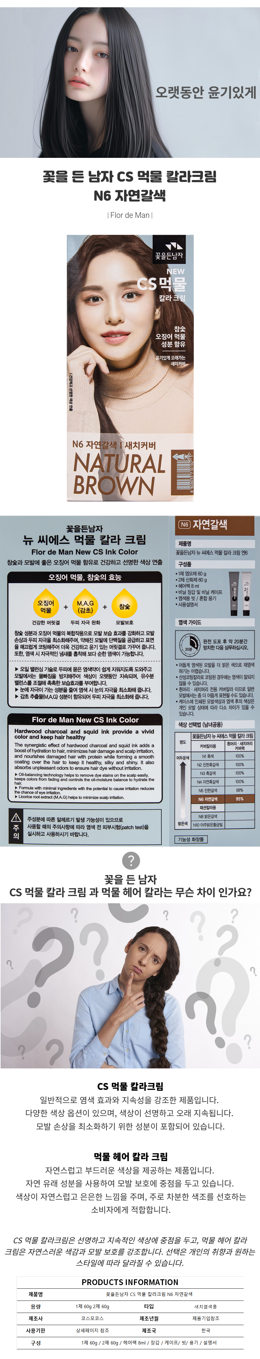 꽃을든남자 CS 먹물 칼라크림 N6 자연갈색